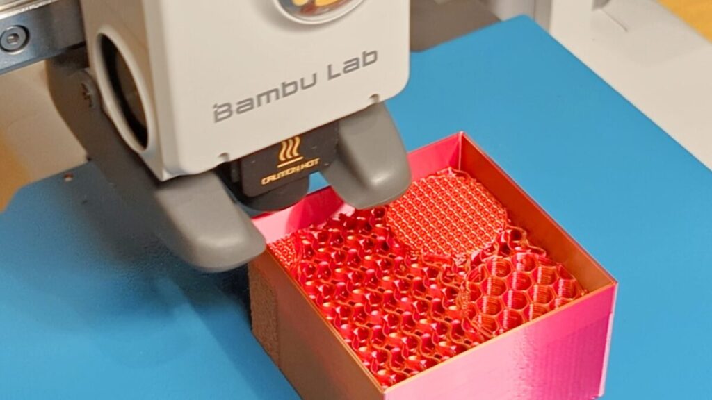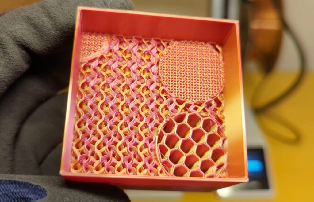 PLA Dualの色変化が綺麗なジャイロイドインフィルが見えますね。