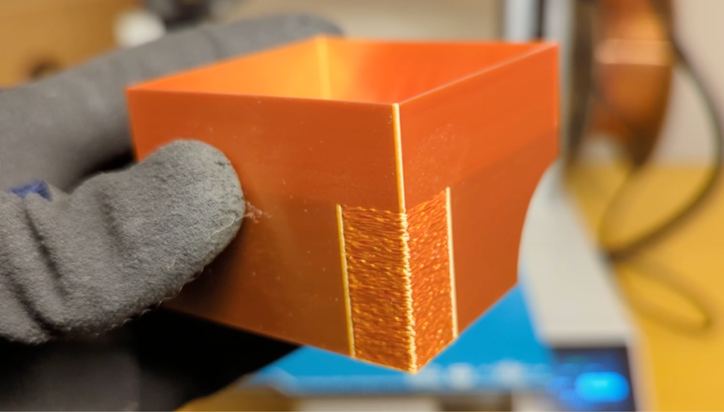 さらに、メインモデルの角のところだけに、表面がザラザラになるファジースキンを適用することもできます。