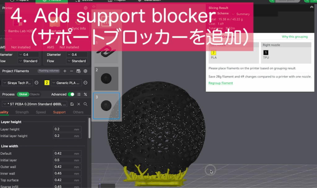 この記事では、Bambu Lab「A1mini」を使用して、全体だけでなく部分的に設定を変える方法や、サポート材の自由な配置方法など、意外と知られていない小技を詳しく解説していきます。