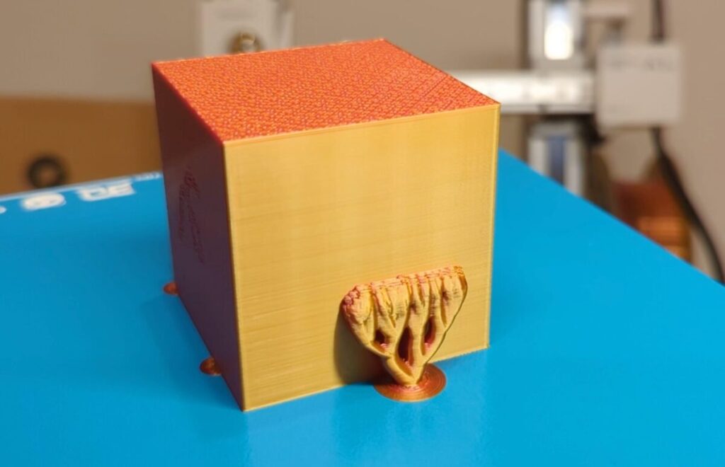 PLA Dualフィラメントで実際にプリントしてみたところ、各種変更がしっかり反映されました。