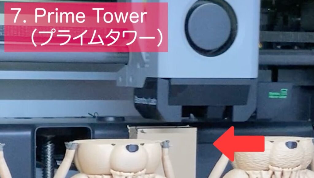 7つ目の意外な設定は、マルチカラープリント時に生成されるプライムタワーの形状変更です。