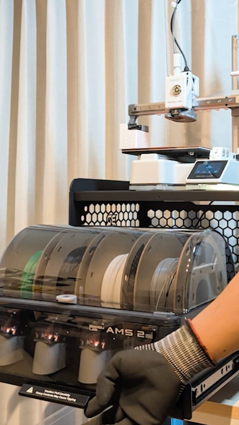 両機種とも別売りの「AMS lite」を導入したり、A1シリーズ用AMSハブを活用して「AMS」を導入したりすれば、多色フィラメントをセットして自動的に切り替えられるようになります。