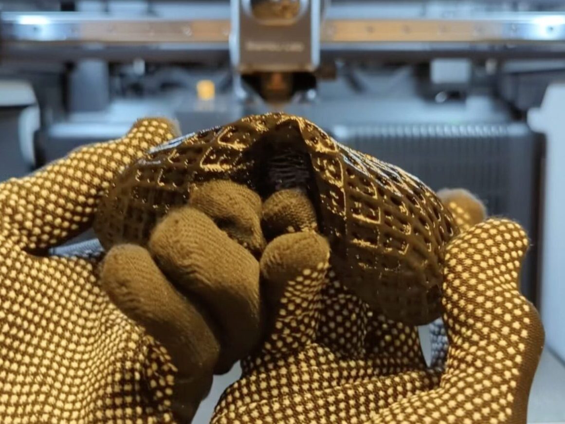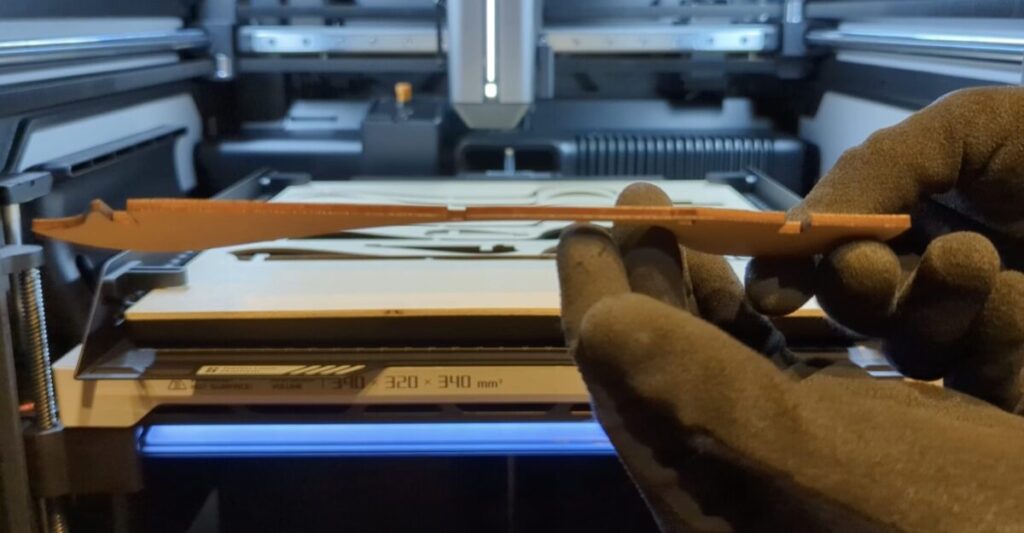 PPS-CFでプロペラのようなモデルをプリントしたところ、反ったり積層割れが起きたりすることもなく、きれいな仕上がりでした。