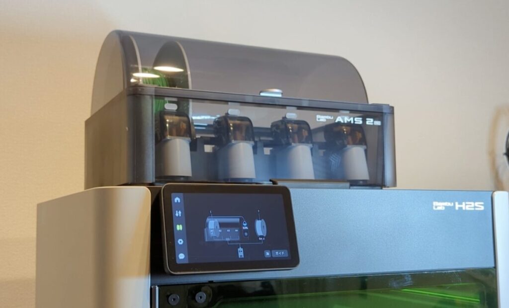 「AMS 2 Pro」への進化で乾燥機能や供給速度は向上したものの、1つのノズルで複数のフィラメントを切り替える方式に変わりはないため、
