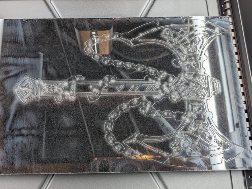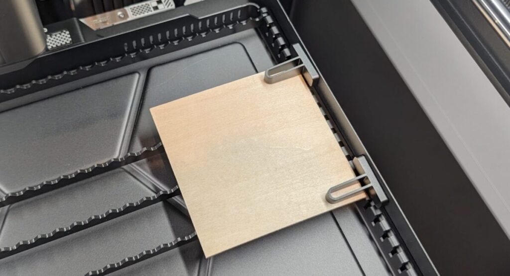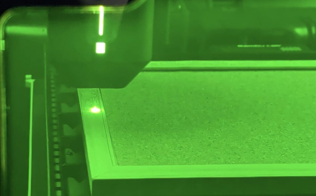 しっかり遮光されているため、レーザー彫刻している様子を扉越しに見てもほとんど眩しさは感じませんでした。