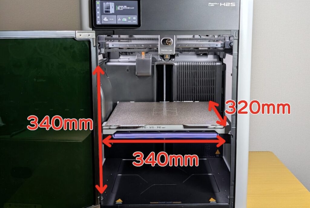 「H2S」は、現行のBambu Lab 3Dプリンターの中で最も大きい造形サイズを持ちます。
