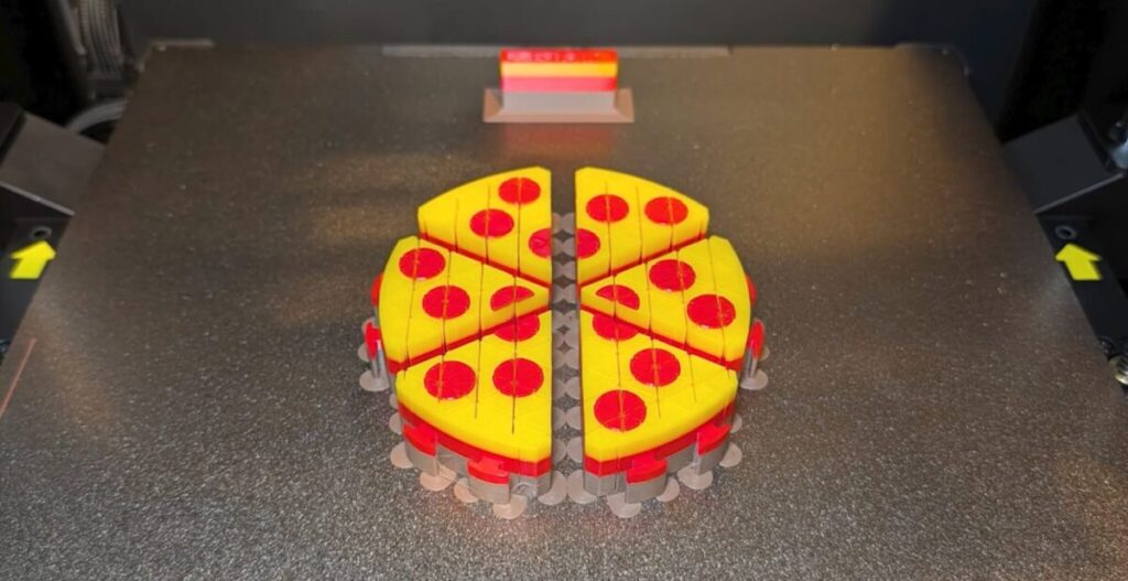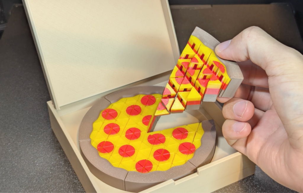 たとえば、ブラウン・レッド・イエローのフィラメント切り替えでプリントされたピザのモデルは、熱々とろとろが見事に表現されていました。