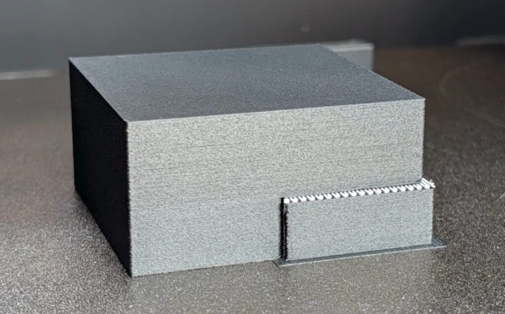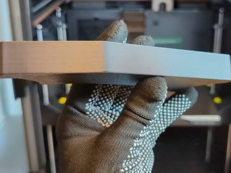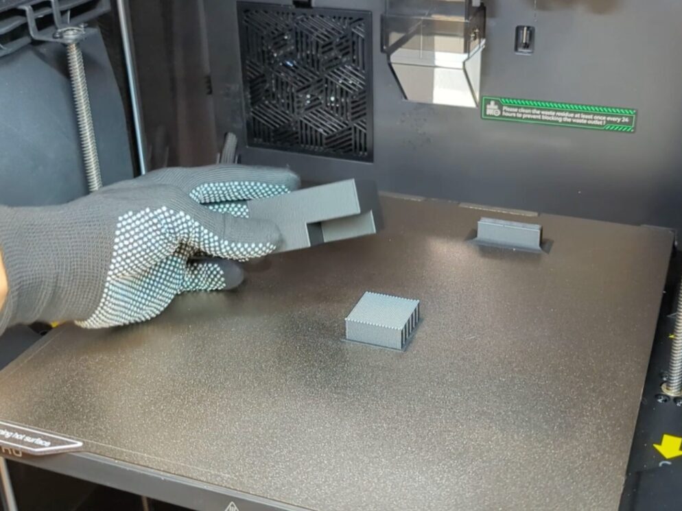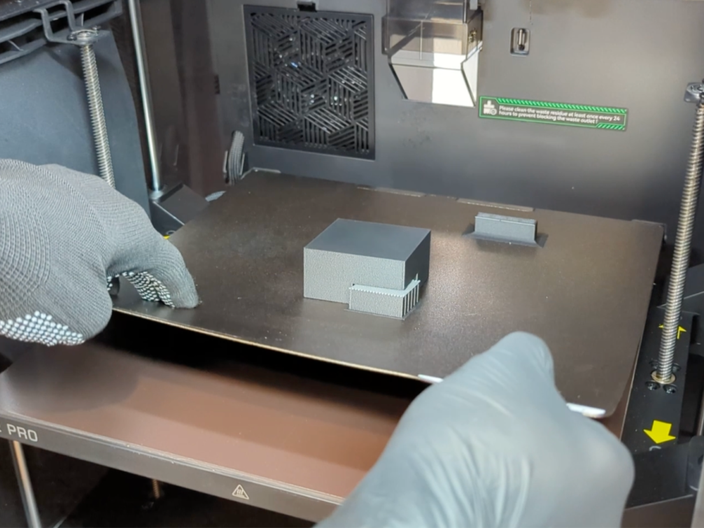 プリント品本体には耐熱PLA、サポート材との界面にはCoPEフィラメントを使用することで、プレートを持ち上げるだけでプリント品とサポート材がスムーズに分離されました。