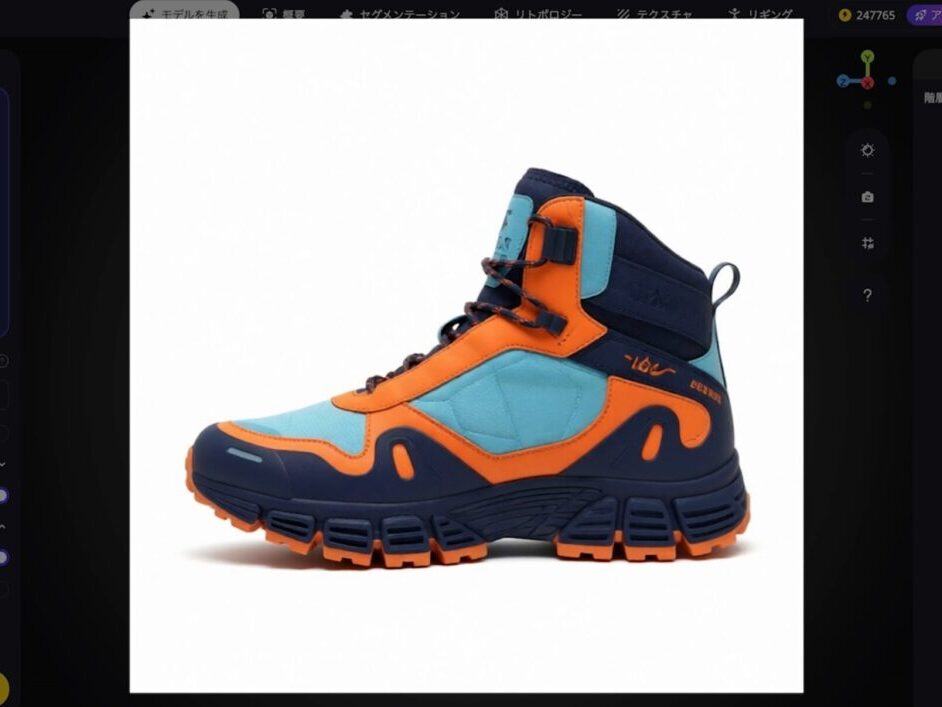 次に、3D生成AI「Tripo」で作成したカラフルなスニーカーのモデルをプリントしてみます。