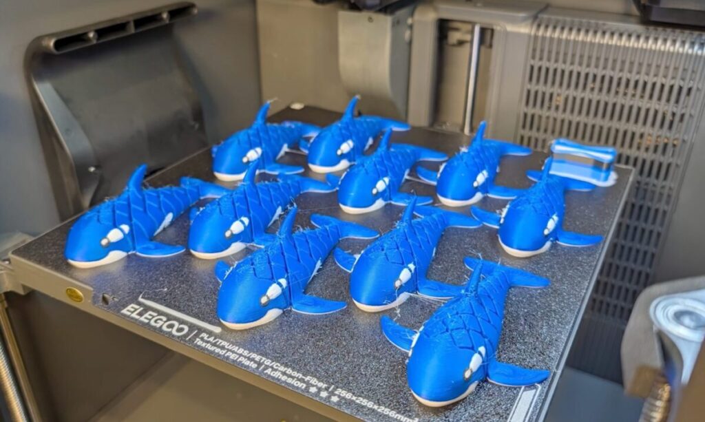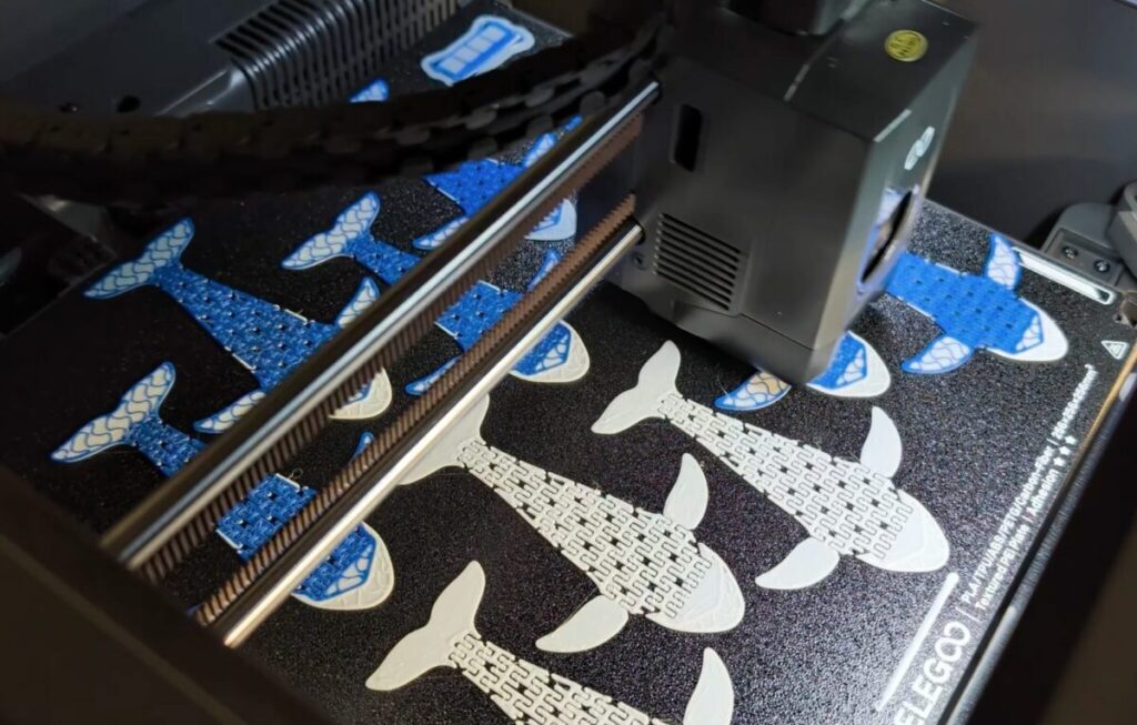 まずはELEGOO純正のPLAフィラメント(ブルー、ホワイト、ブラック)を使用し、3色のシャチのモデルをプリントしていきましょう。