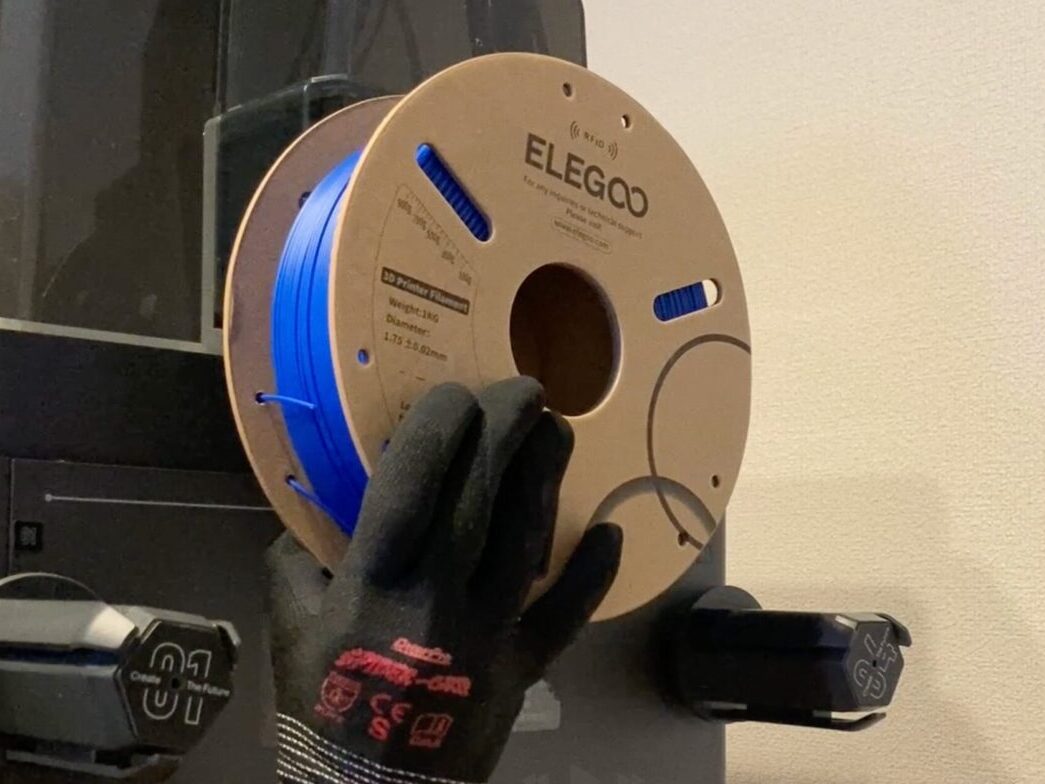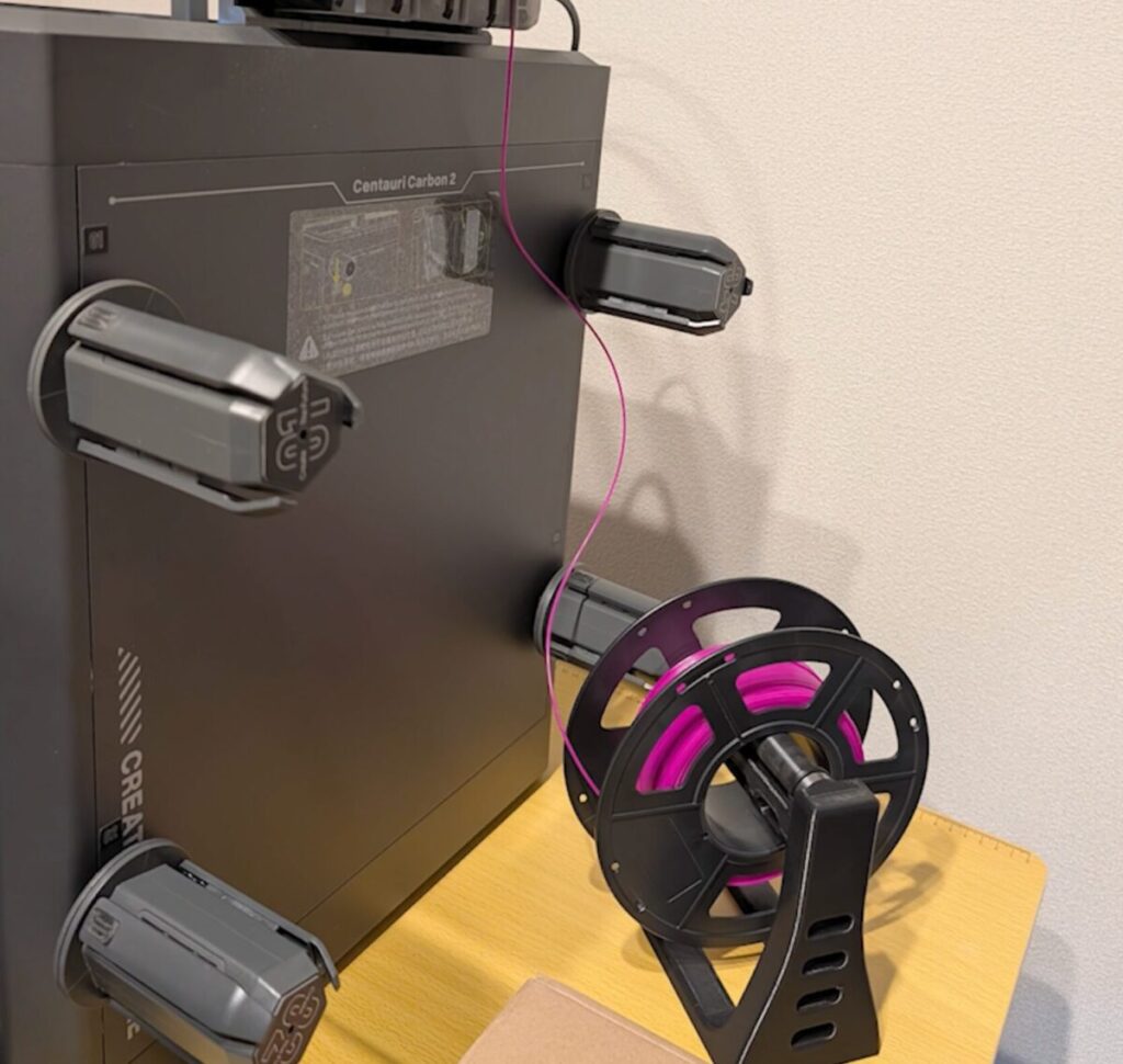 フィラメントが途中で落ちてしまうと危ないので、その場合は3Dプリントできるホルダーなどに引っ掛けてプリントするのがおすすめです。