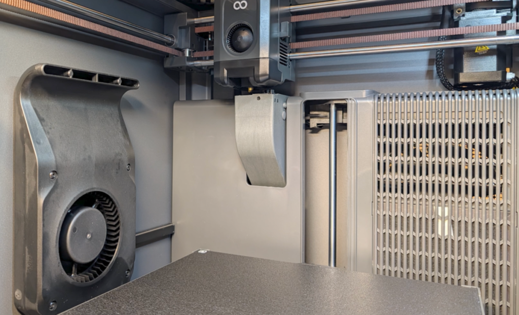 前モデルでは奥の壁にファンがありましたが、「Centauri Carbon 2」では側面にファンが設置されるという、他社を含めても標準的な仕様に変更されました。