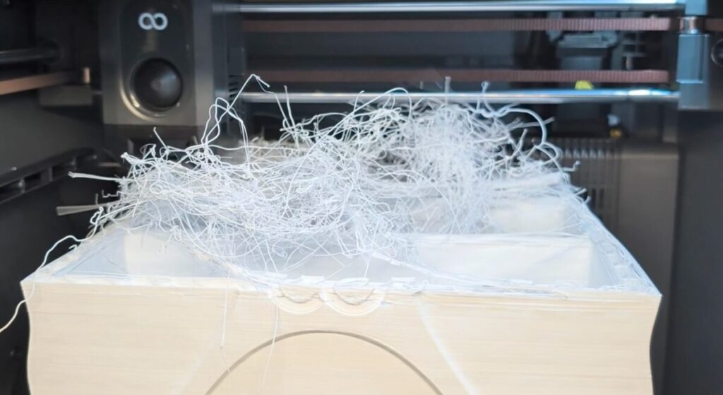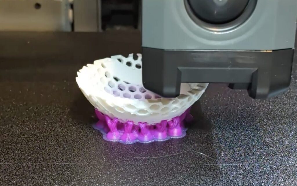 一方で、シングルノズル方式ゆえに大量のフィラメントゴミが発生するため、頻繁にマルチカラープリントを行う用途には不向きかもしれません。