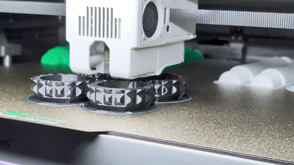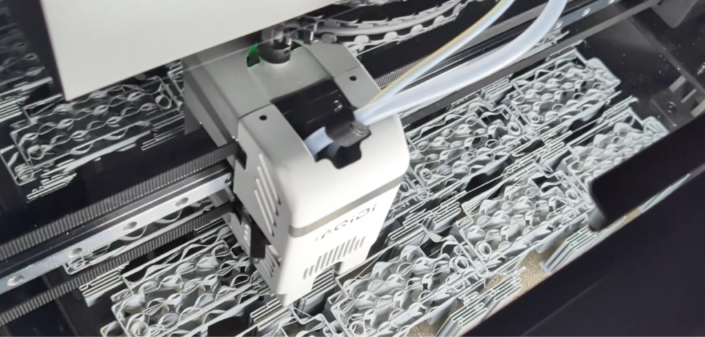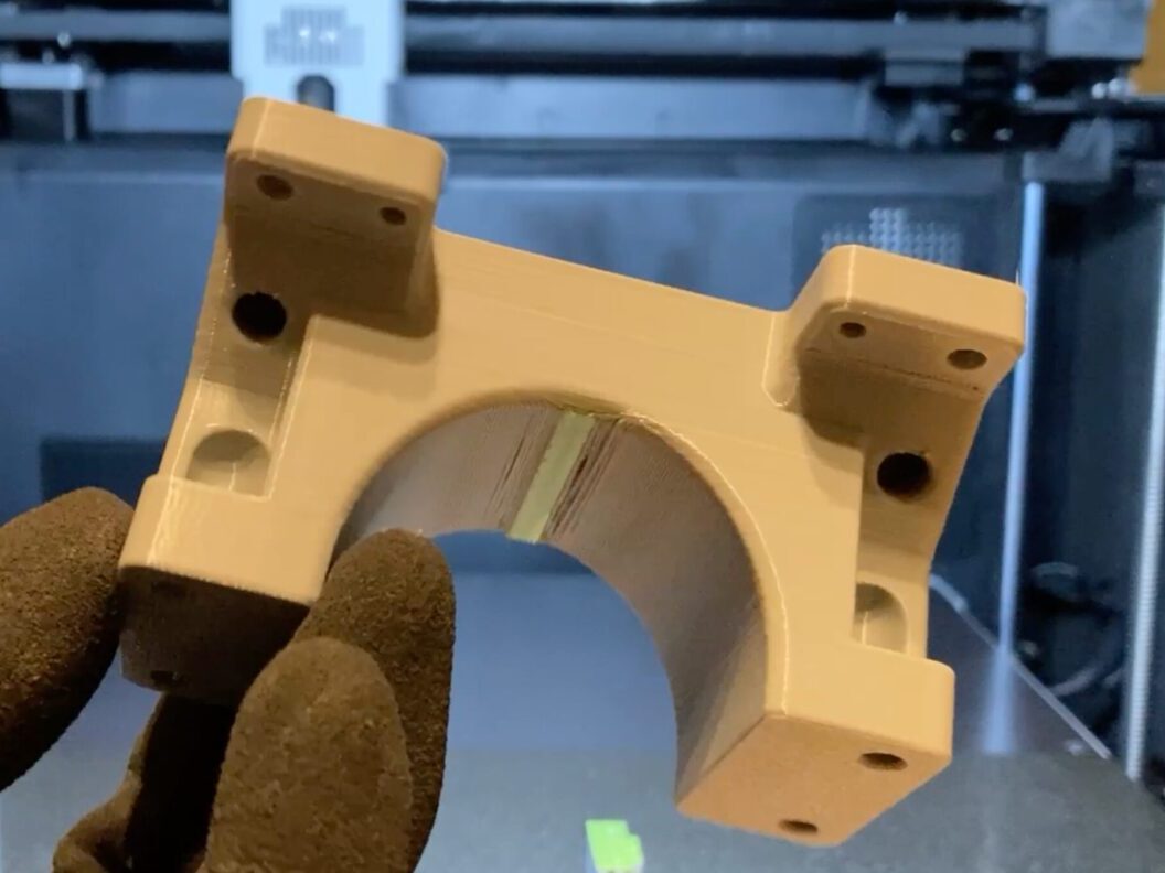 この性能を生かして、300℃以上の高温でないとプリントが難しいPPS-GFフィラメントの3Dプリントを実施しました。