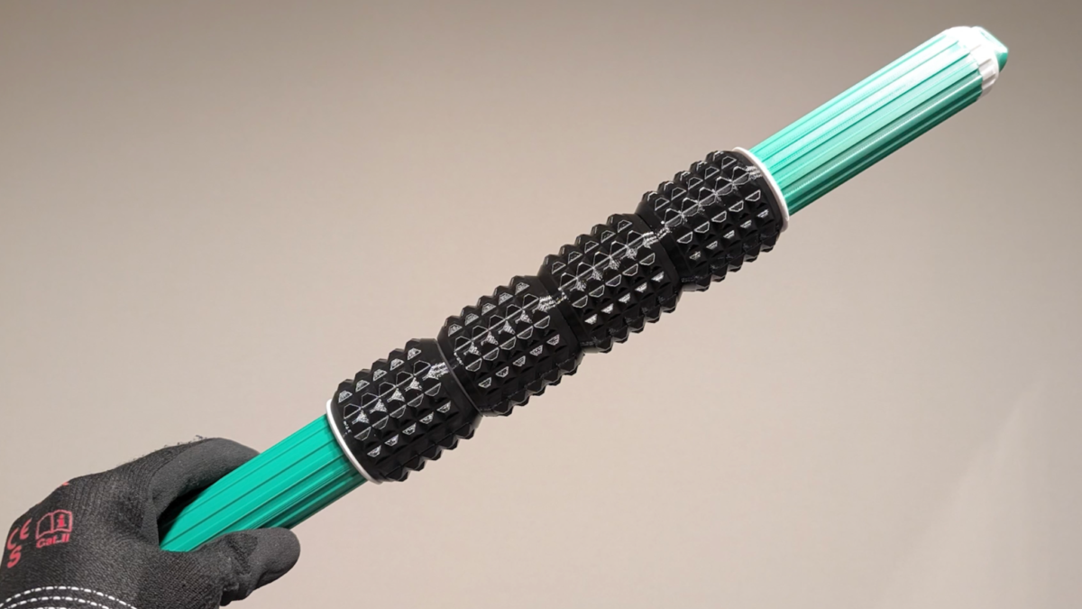 緑と白のPETGと黒いTPU 64Dを使い、マッサージ用のスティックをオブジェクトごとにプリントしました。