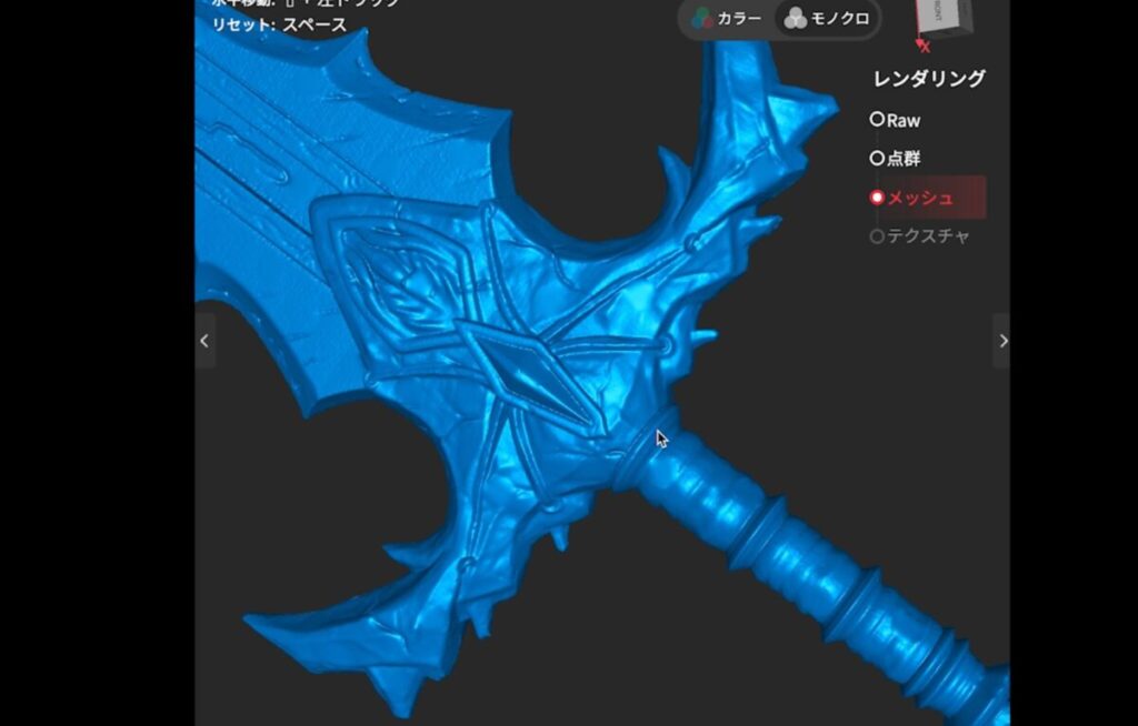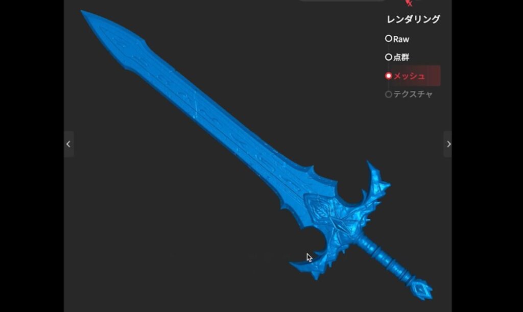 「MetroY Pro」の推奨スキャンサイズは最大1辺1m程度とされていますが、今回は全長130cmほどある大剣の造形物をスキャンしてみます。