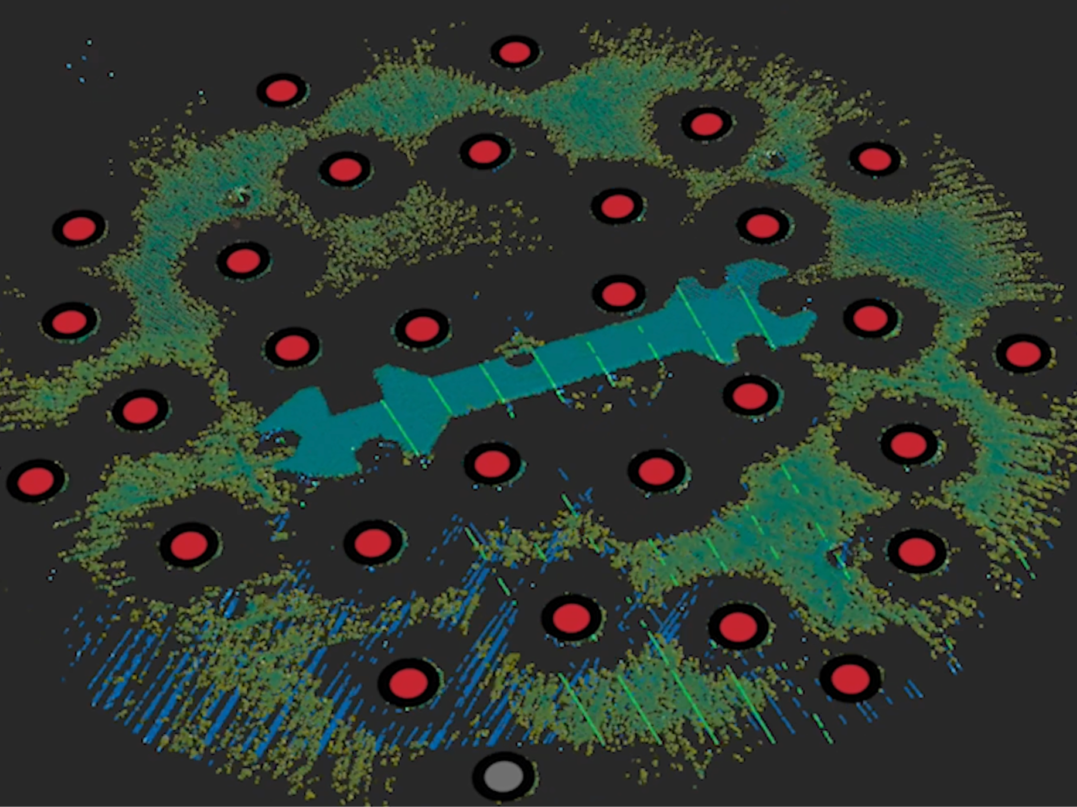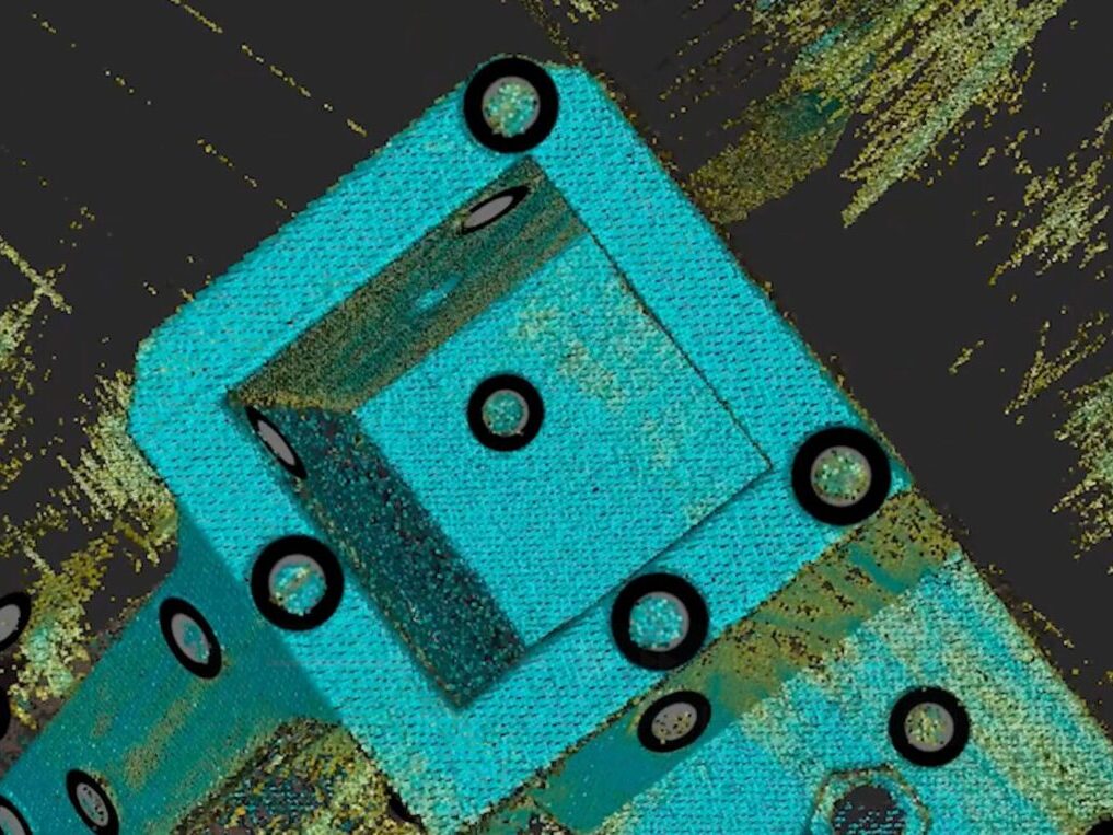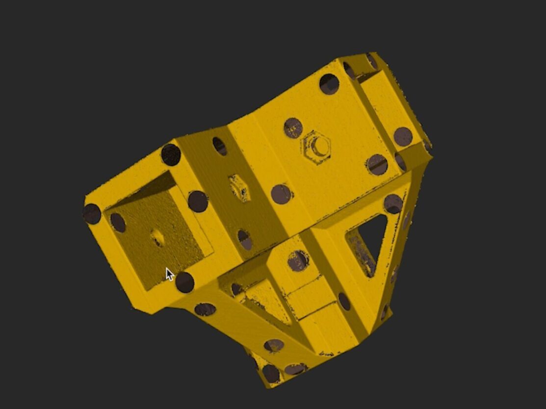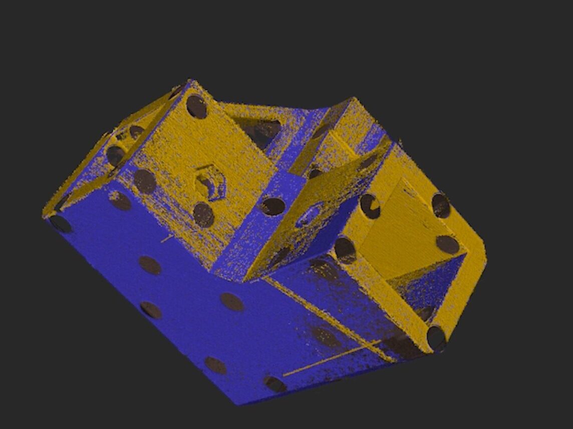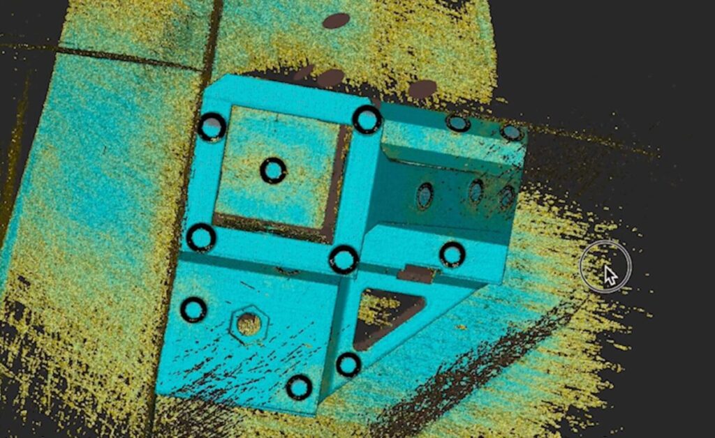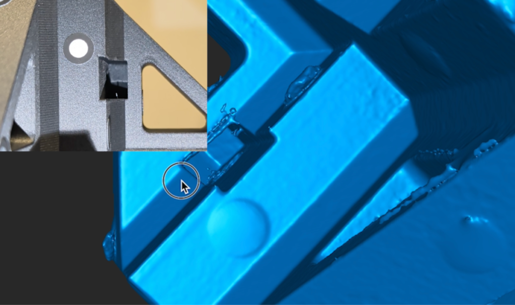 レーザーラインを1本だけ照射してピンポイントで狙うシングルラインモードを使うことで、他のモードでは影になってしまう四角い穴の奥底や狭い溝の側面もしっかりとデータ化できました。