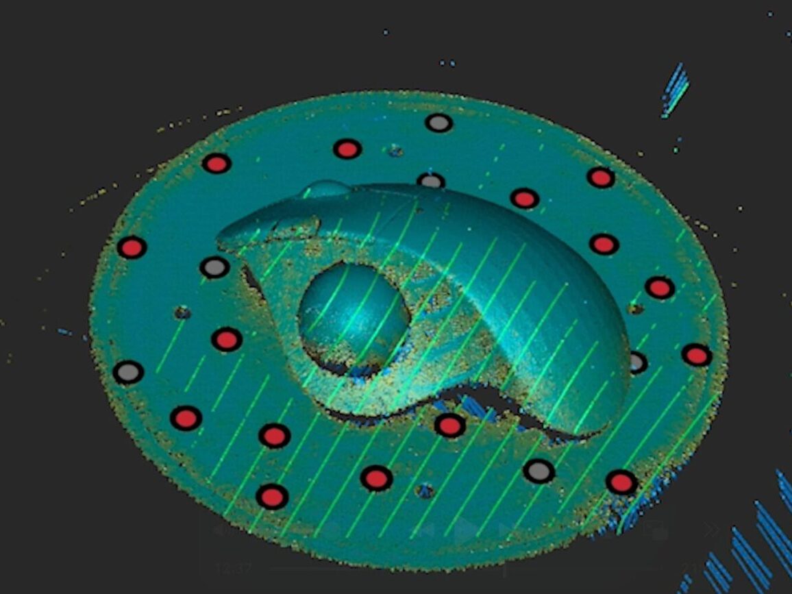 フルフィールドモードは、62本の構造化ブルーライトを使用し、特徴のある形状であればマーカーシールなしでも高速にキャプチャすることが可能です。