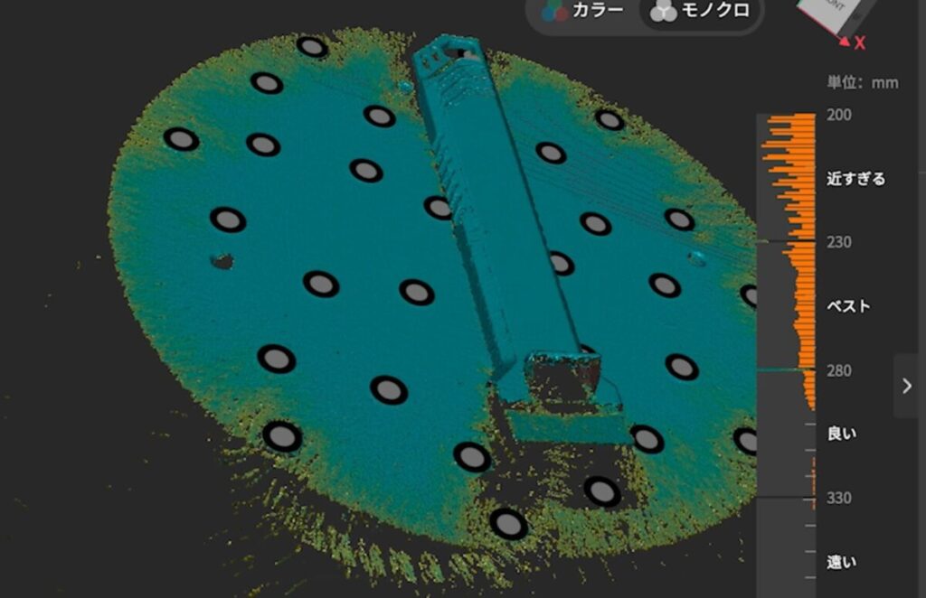 この時点ではモヤッとしていますが、後処理(点群融合とメッシュ化)を行うとスッキリと鮮明なデータが得られました。